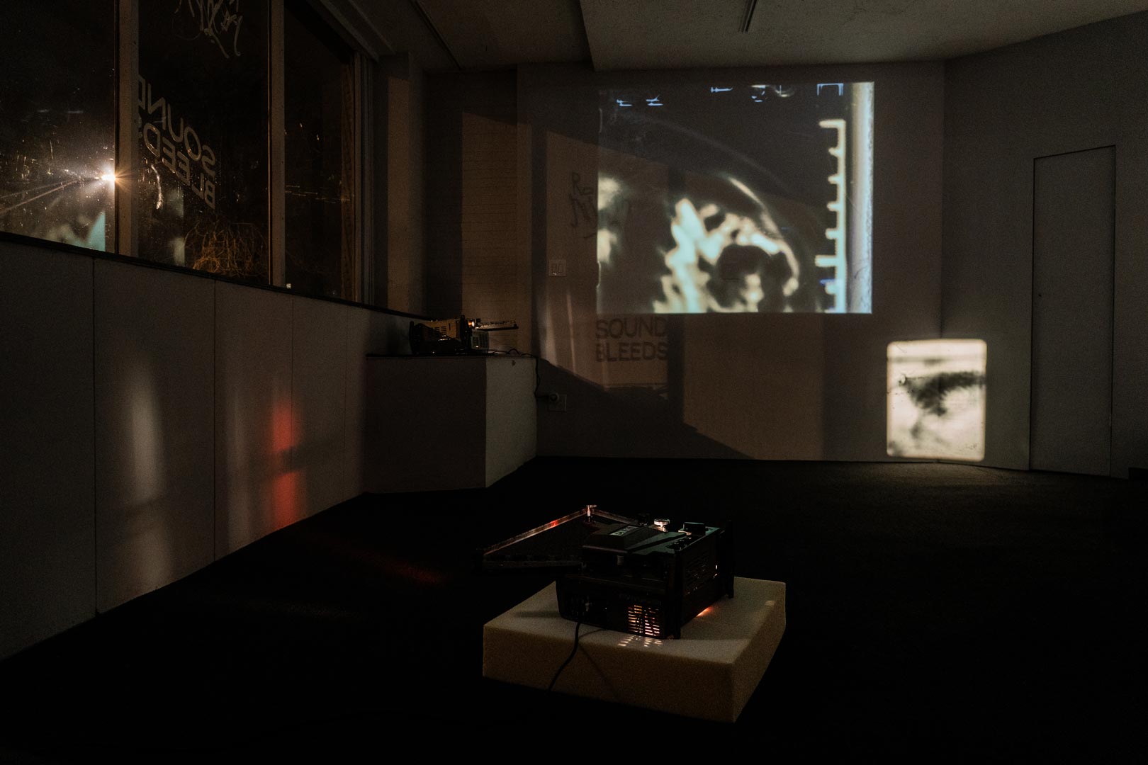 An insistent weight encroached the shadows of my uterus, forcing me through medical thresholds and normative expectations. With 16mm film, digital video, and sound, I suture the threads of control over what feels beyond reach: the sovereignty of the body and a digital form of self. Marking one year since my surgery, SOUND BLEEDS stitches together light and shadow, pulse and silence, conjuring a body unbound by flesh alone. Through the manipulation of medical film and optical sound, this work explores the complex dialogues of self—a merging of the physical and digital, reclaiming agency and embracing multiplicity.